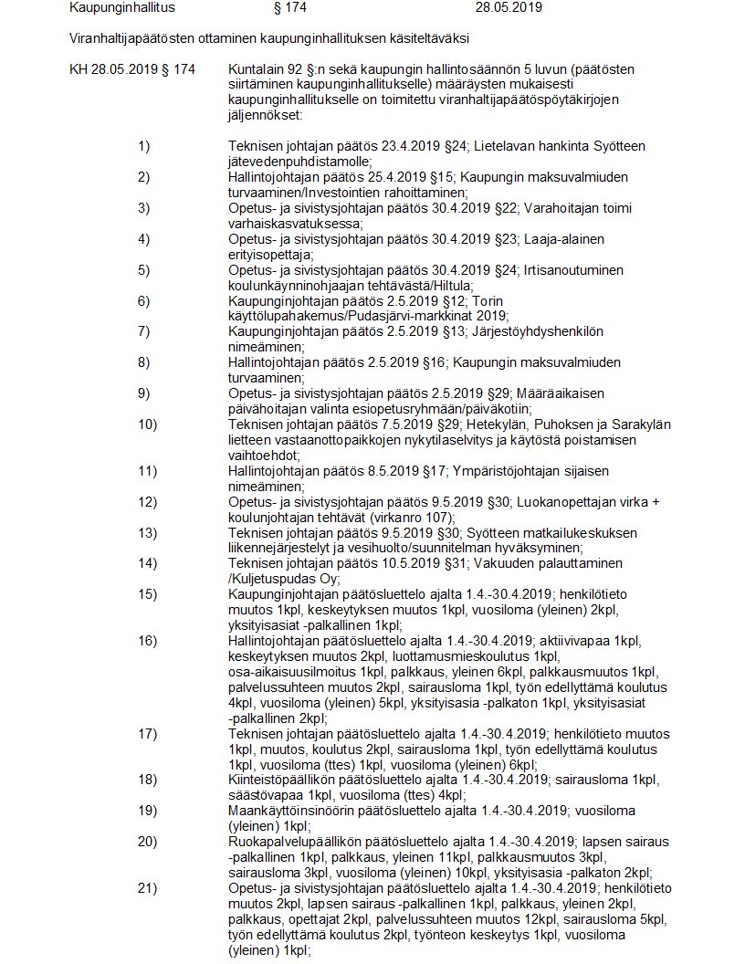 Pöytäkirja 28.05.2019/Pykälä 174